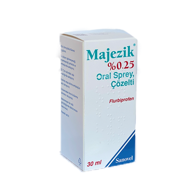 MAJESIC – орален спрей за устата. Съдържа флурбипрофен като активна съставка.